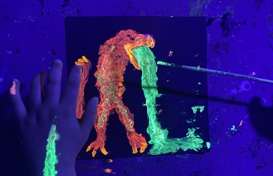 Workshoppen kombinerer sansestimulering med historiefortælling og foregår i et trygt, stemningsfuldt rum med dæmpet UV belysning, projektioner og lyskilder, duftindtryk og blide lyde. Under forestillingen vil børnene blive præsentereret for forskellige kreative opgaver som alle taler ind i fortællingen.